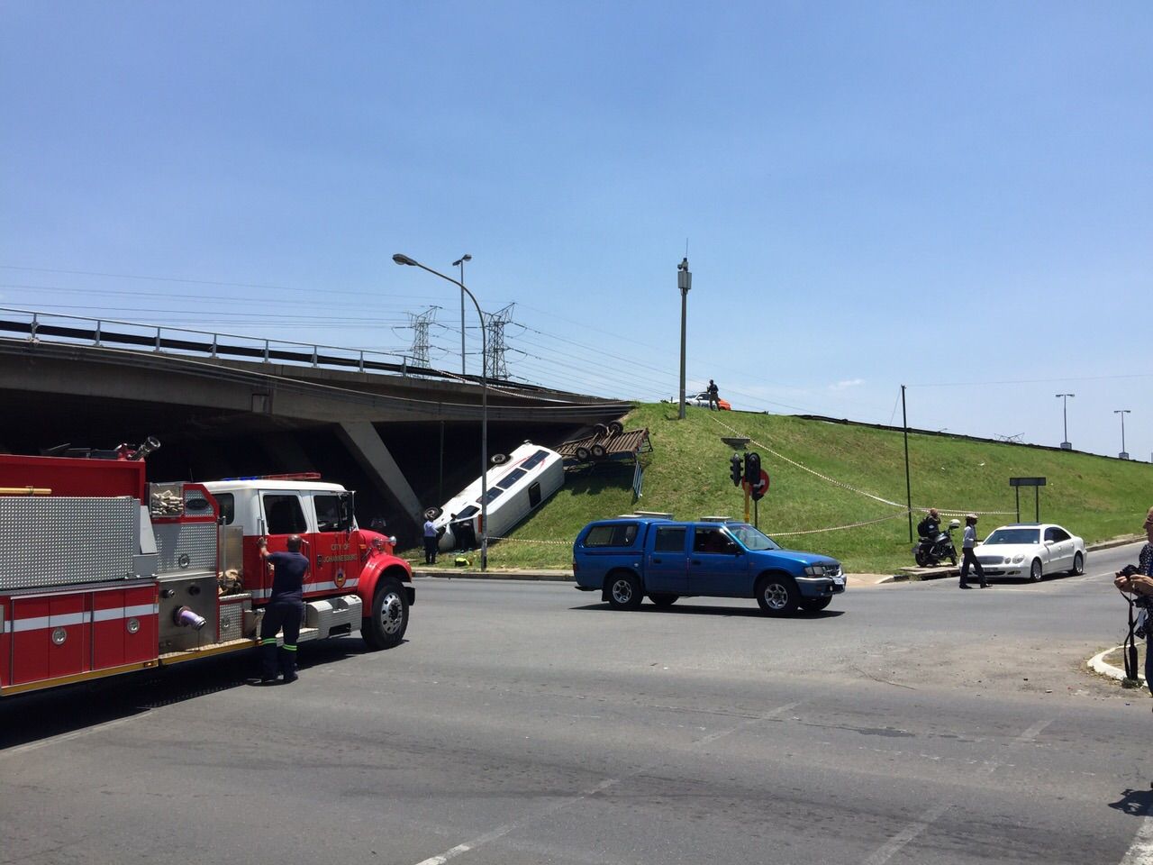 A mini bus taxi traveling along the m1 motorway skid off the road  down the embankment under the the bridge on corlette drive on 25 January.
