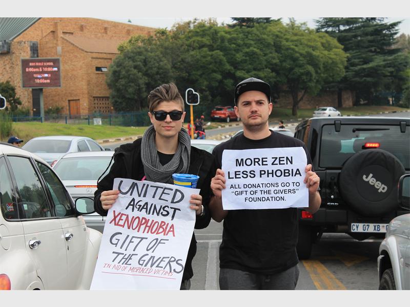 SANDTON - Motorists on the corner of William Nicol and Sandton drives saw the Going the Extra Mile (Gem) Project and Gift of the Givers gathering at the intersections for an interactive protest against xenophobia on 18 April.