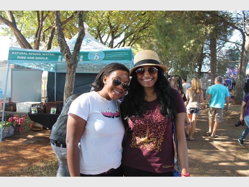 FROM STAGE TO STAGE: Festival-goers Matshi Matol and Juno Mathew.