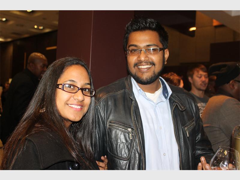 Pour it up… Dashnee Naidoo and Ryan Bobbychun.