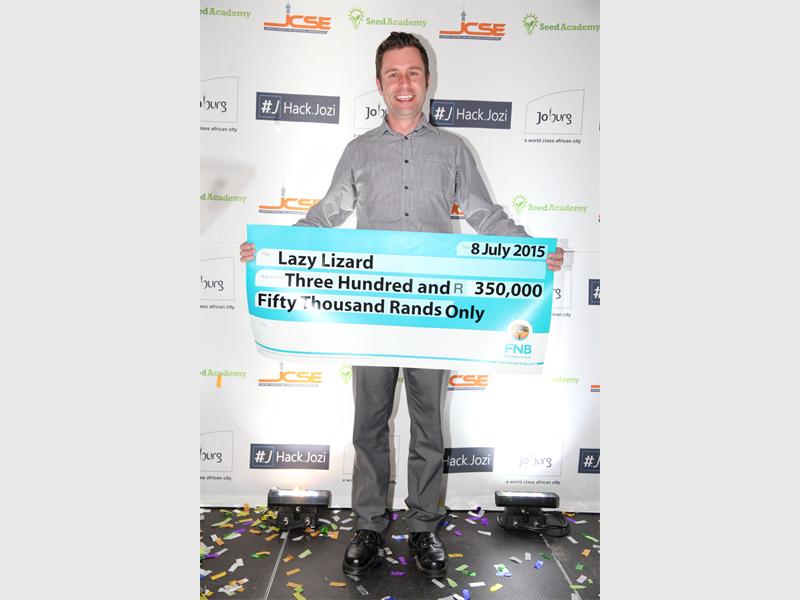 The top three were Desmond Mongwe of MoWallet who was awarded R1 million, and Niel Pieters of Lazy Lizzard and Percy Lawrence of MoveThisStuff who were both awarded R350 000.
