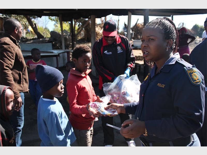 BRAMLEY – THE Bramley police took a break from fighting crime and gave back to the local community by donating a variety of foods and blankets to the residents of the disadvantaged Stjwetla informal settlement in Marlboro on 17 July.