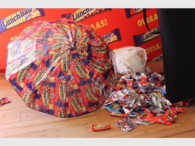 So what happens to all those wrappers? Lunch Bar has partnered with young entrepreneurs who will showcase their talents through the use of collected Lunch Bar wrappers. Artist John Vusi Mfupi is one such person. He uses recycled paper to create collages and will create a special piece using the Cadbury Lunch Bar wrappers. Another talent onboard is Thamba Tabvuma, who owns Republic of Recycle, and makes bags, wallets and shoes out of recycled material. He will use the wrappers to produce recycled give-back items to the participating taxi ranks, thanking them for their involvement in the campaign, and then will use the balance of the wrappers to make goods to sell in his shop.