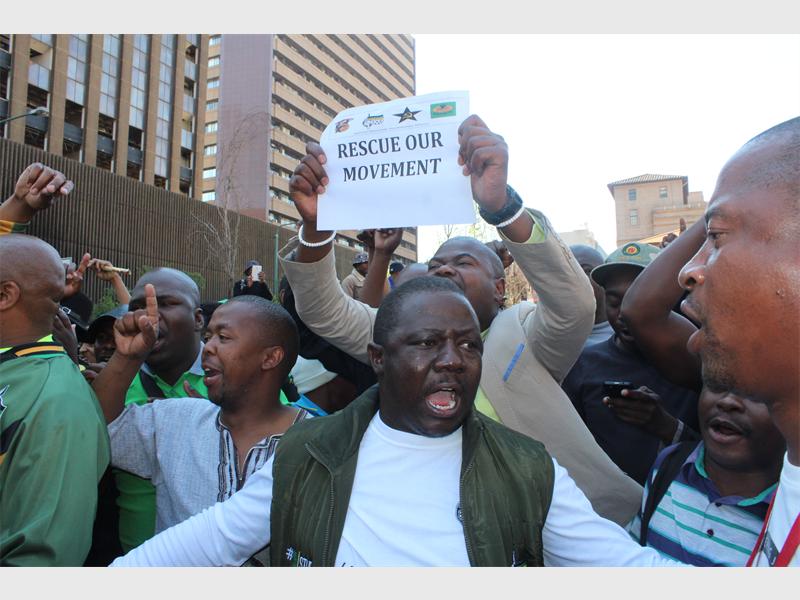 MKMVA chairperson Kebby Maphatsoe thanked the supporters who came out in numbers to protect Luthuli House. He berated some of the ANC stalwarts, including Mathews Phosa and Kgalema Motlanthe, for failing to accept the Mangaung Conference outcome and results.