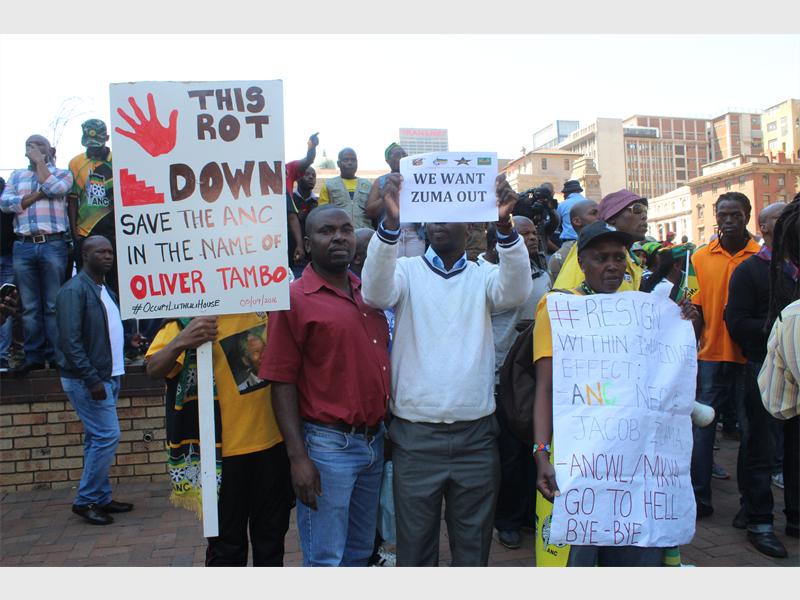 The #OccupyLuthuliHouse movement supporters left Beyers Naudé Square after African National Congress (ANC) secretary-general Gwede Mantashe received their memorandum, despite attempts to prevent him from doing so by the uMkhonto we Sizwe Military Veterans Association (MKMVA), the military arm of the ANC during apartheid.