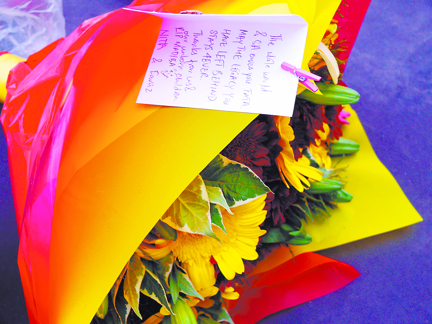 Mourners lay flowers for Madiba at Nelson Mandela Square