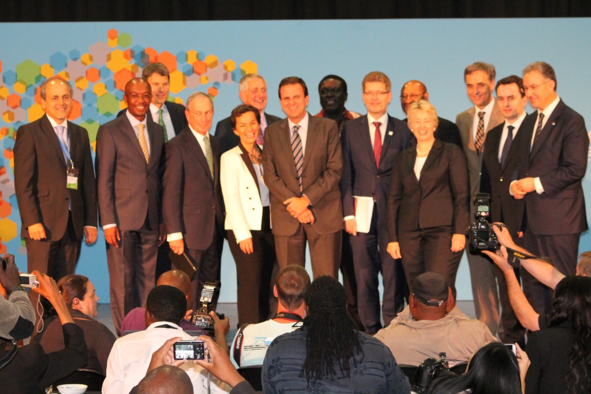 Andrew Steer, President and CEO, World Resources Institute; Mayor Annise Parker, City of Houston; Governing Mayor Stian Berger Røsland, City of Oslo; Mayor Eduardo Paes, City of Rio de Janeiro & Incoming C40 Chair; moderator of the panel, Mark Watts, Executive Director of C40 during a plenary session at the summit.