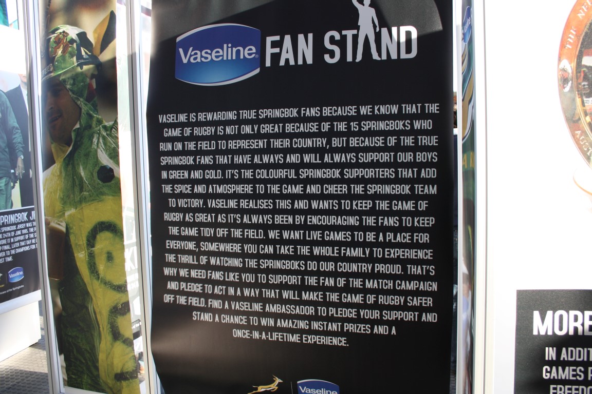 JOBURG - Vaseline launches a new initiative aimed at keeping the game of rugby tidy on and off the field. The initiative is known as the Vaseline Fan of the Match.