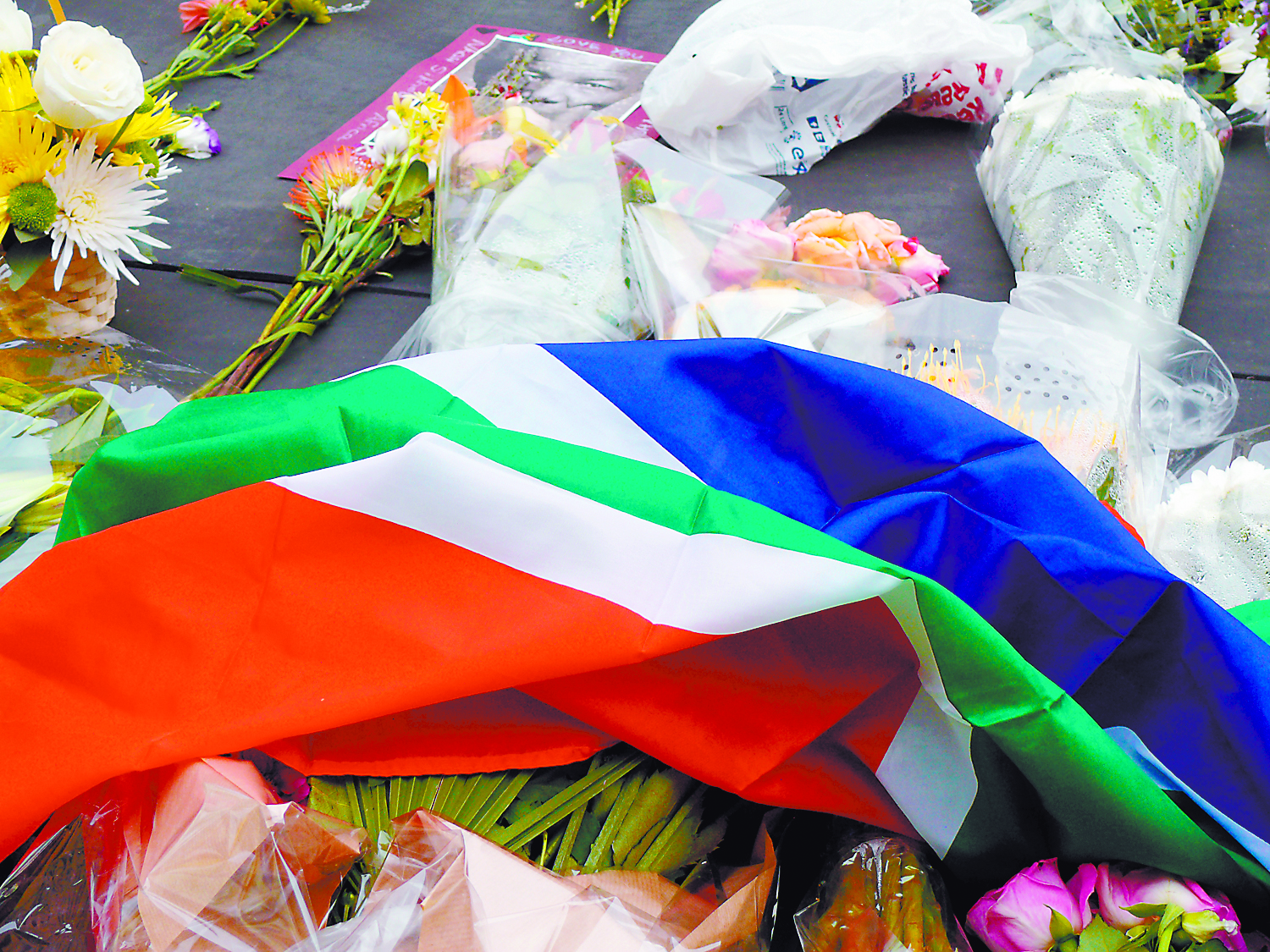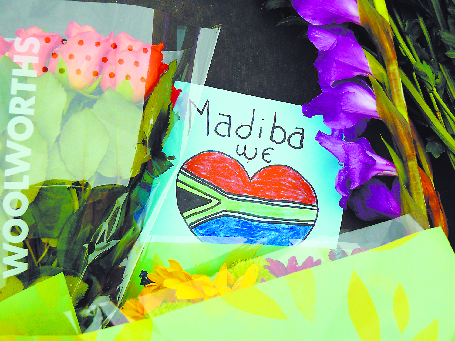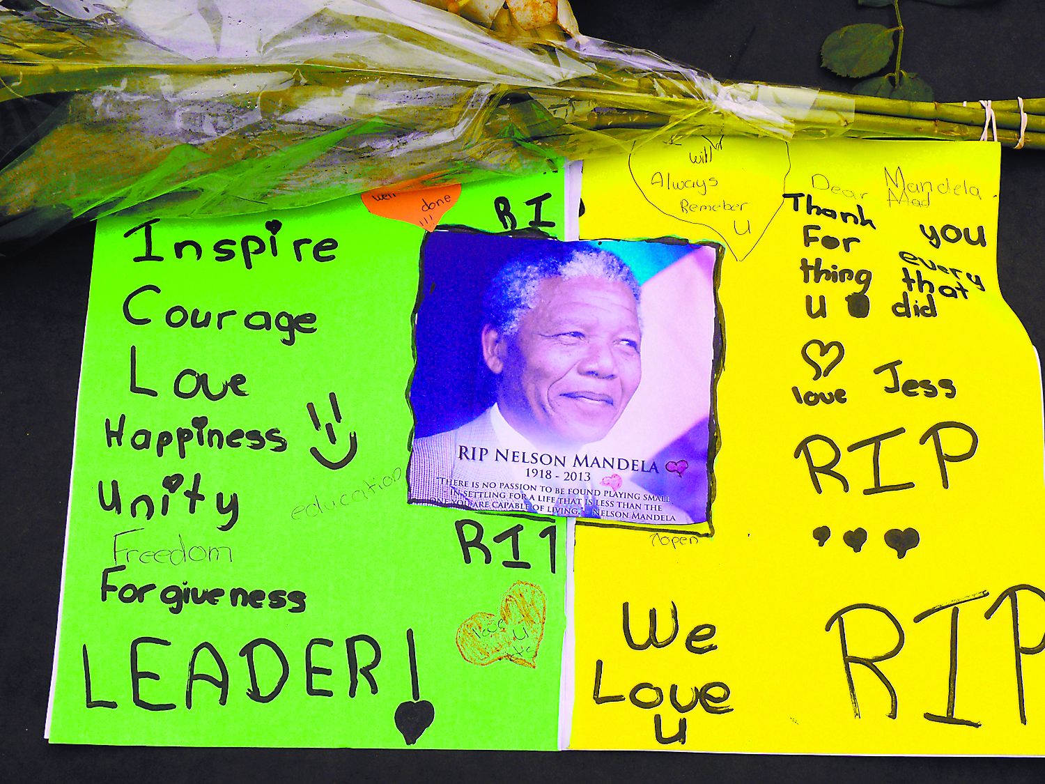Mourners left flowers and messages for the late Father of the Nation, Nelson Mandela.