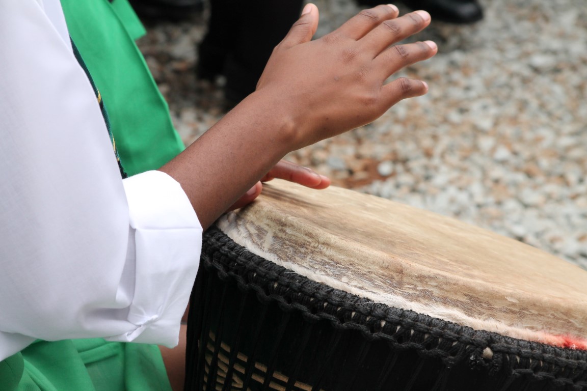 The St Martin de Porres High School choir performs for attendees, who came to see the school’s green innovations.