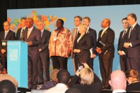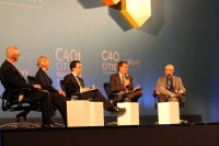 Andrew Steer, President and CEO, World Resources Institute; Mayor Annise Parker, City of Houston; Governing Mayor Stian Berger Røsland, City of Oslo; Mayor Eduardo Paes, City of Rio de Janeiro & Incoming C40 Chair; moderator of the panel, Mark Watts, Executive Director of C40 during a plenary session at the summit.