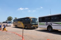 Police official and security guards hired by the DA from various companies congregate outside the Westgate Transport Hub.