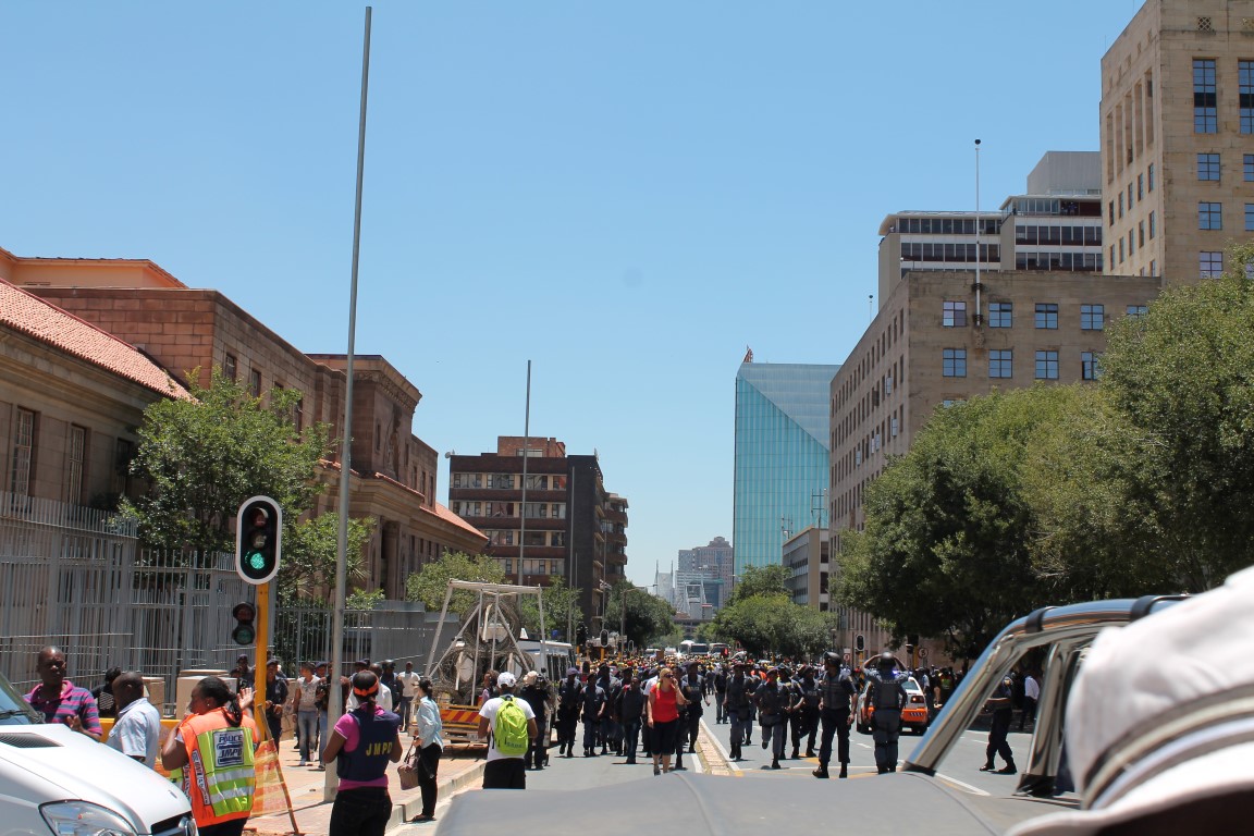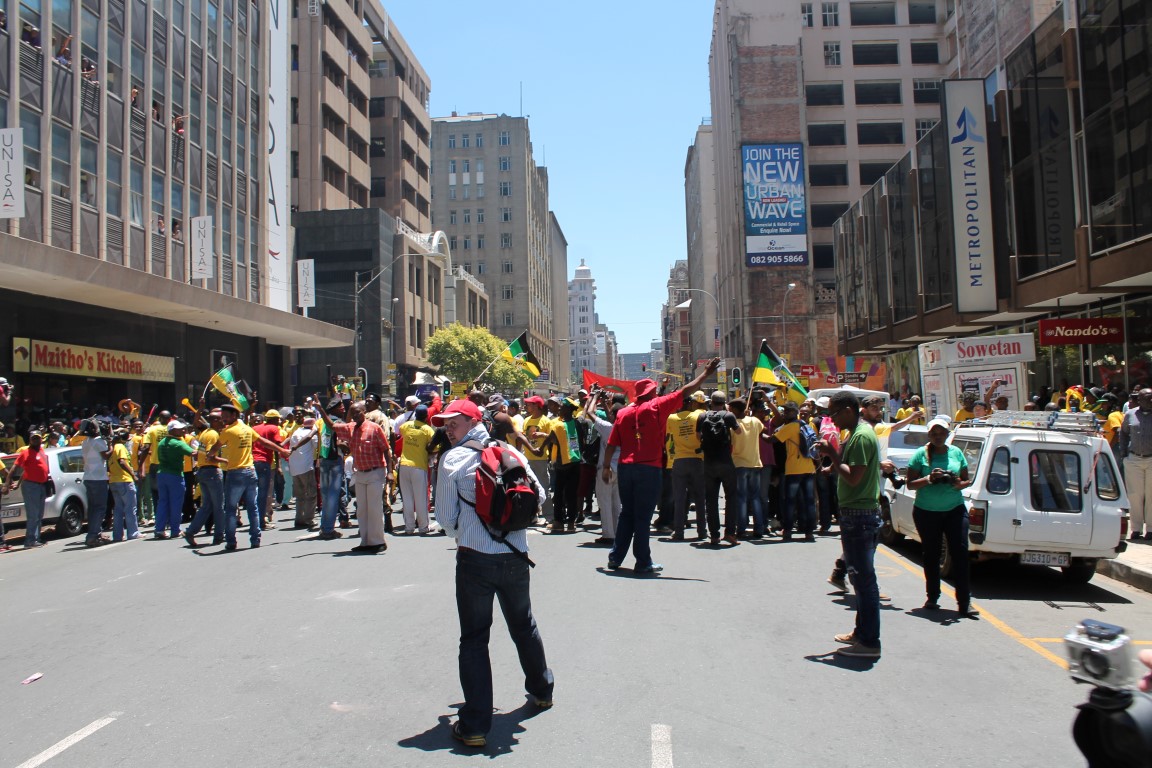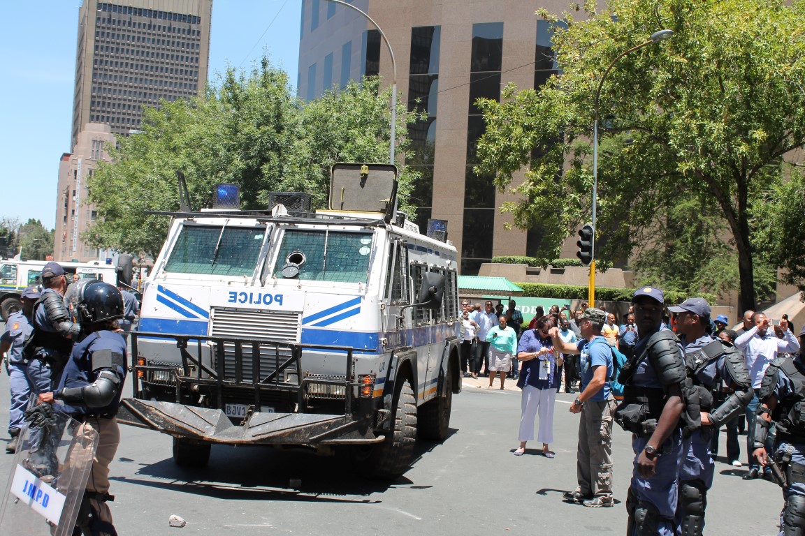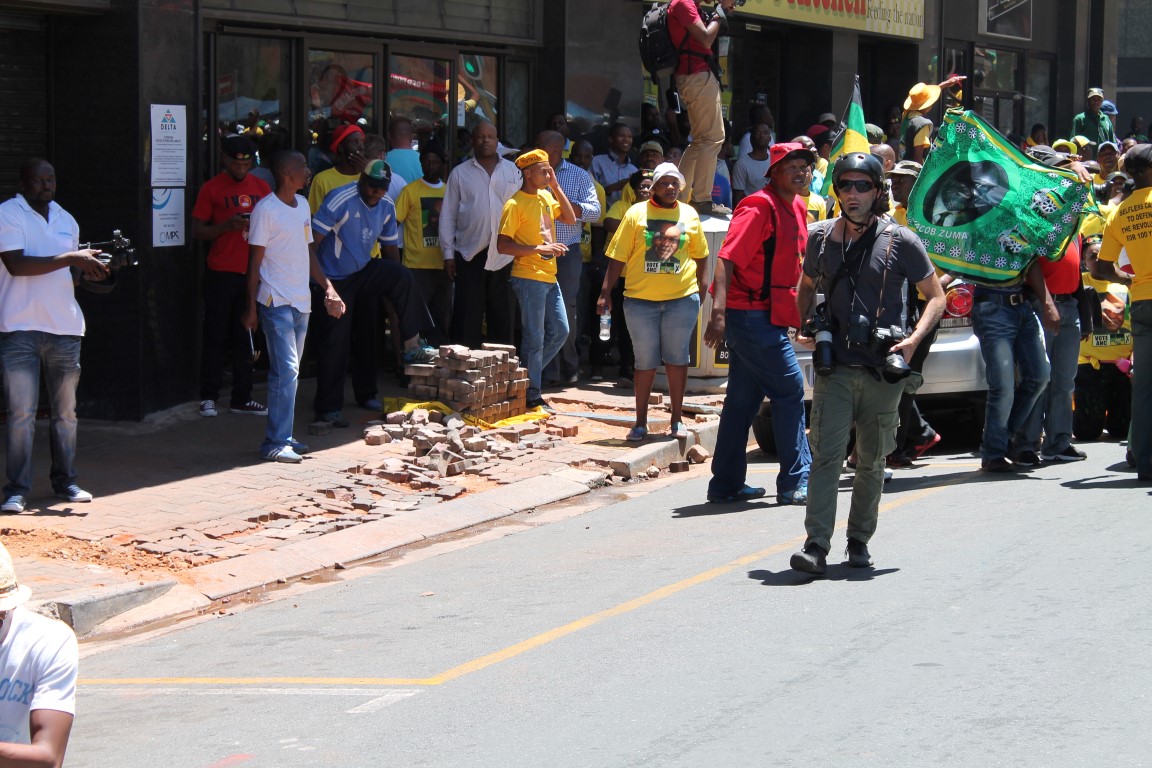 After police used stun grenades to disperse the crowds, ANC supporters began to retreat.