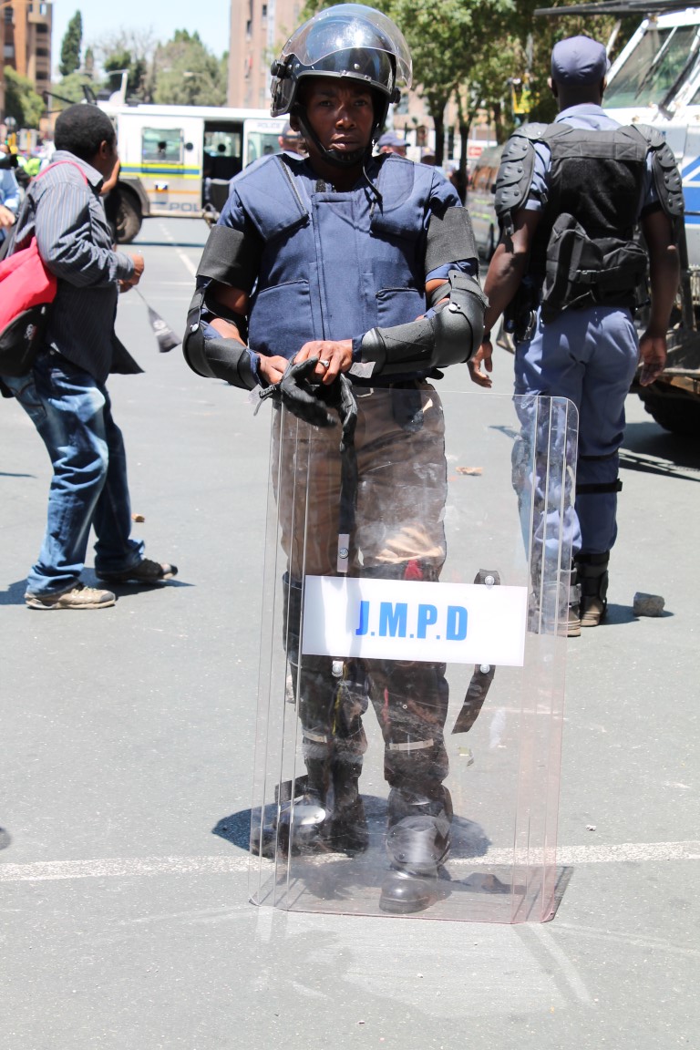 JMPD official prepare themselves for the possibility of further violence.