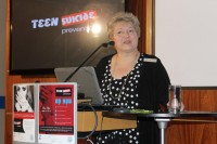 Zama Mbele, a clinical psychologist speaks out about mental illness at the We Care campaign launch.