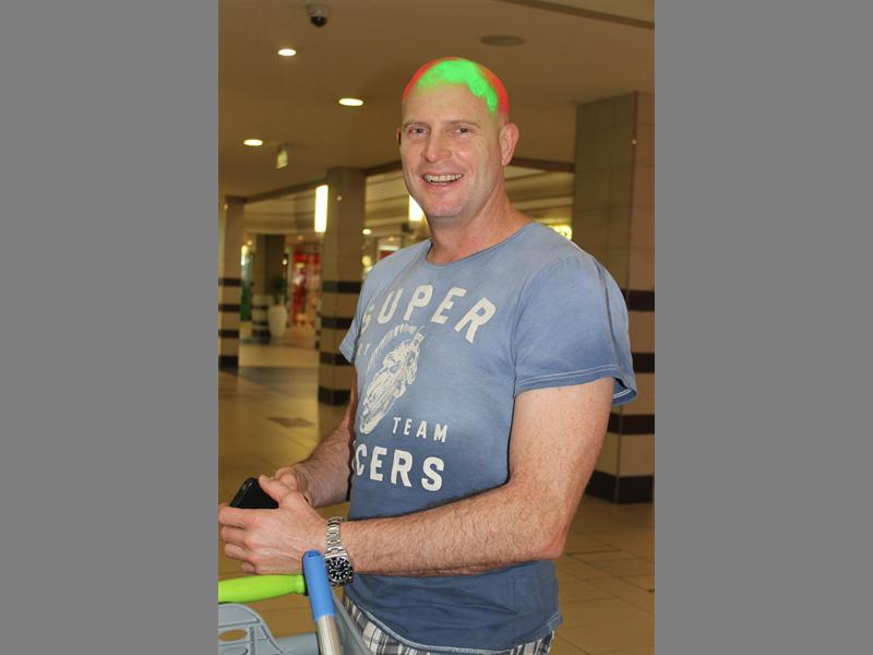 Brave shave… Nic Young shaves off his hair and colours his head with a mirage of bright colours.