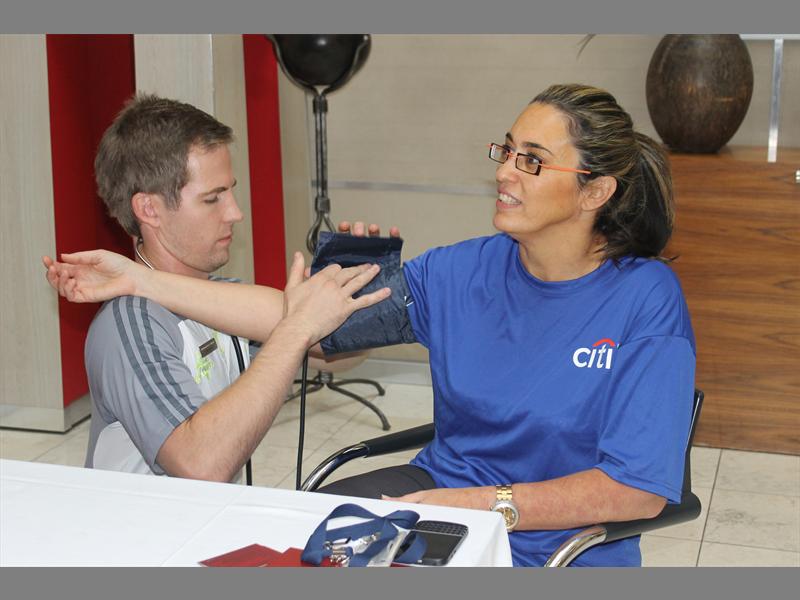 Fit to go… Elinor Bodinger gets her blood pressure evaluated.