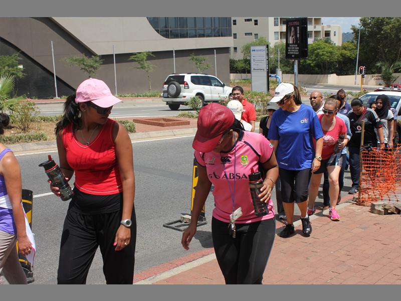 March on… Citi employees walk the streets of Sandton Central for the Global Heart Awareness Campaign.