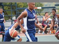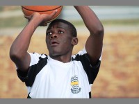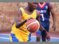 Jump and dunk… Jeppe High player keeps energy high with practise shots.