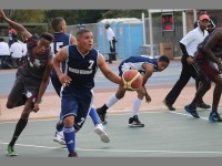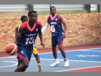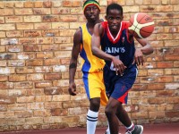 Dribble till you score… St Stithians basketball player edges the court lines to make a pass to his team mate.