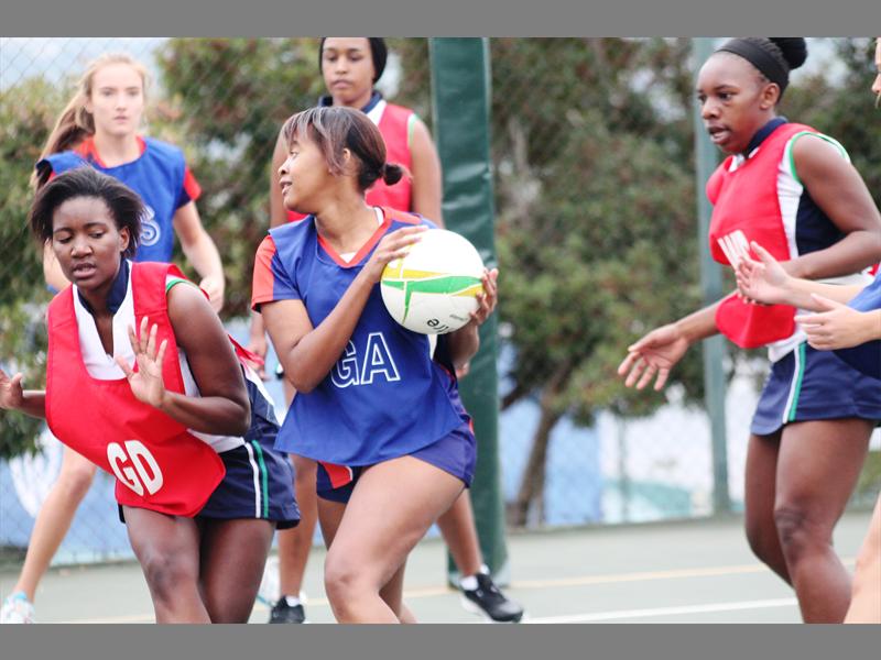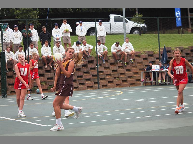 Positioned to pass… Netball Crawford Lonehill players versus Helpmekaar.