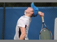 Court manners… St Stithans College tennis player Mitchell Fieldgate competes in Saints festival tennis tournament.