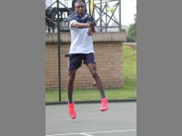 Feet work help stance… Pretoria Boy’s High School tennis player Jake Weatherhead competes in Saints festival tennis tournament.