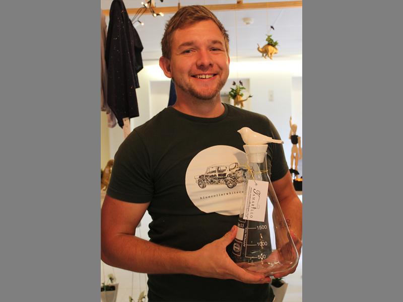 Artisinal ceramic… Tamarillo exhibitor Denton Joachim shows off one of the stall’s products.