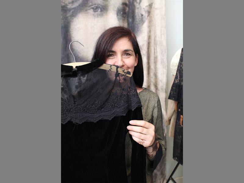 Velvet and vintage… Designer of La Grace Alma Thomas holds up a garment from her brand.