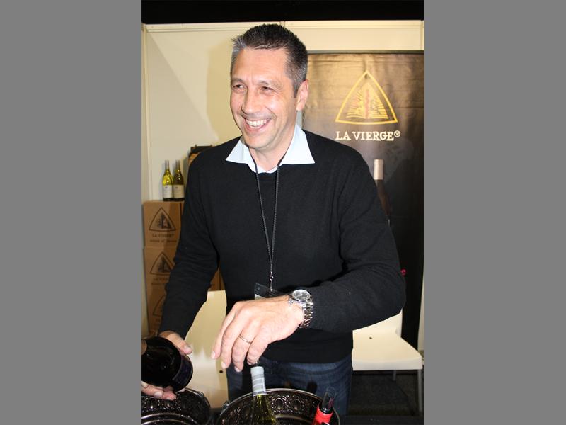 Interacts with customers… Paul van Dooren still has a smile on his face after a three day wine show.