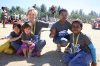 Bryan, Kelsey and Natalie Pritchards and Khanyo and Kwanda Pistoli share a smile after the fun walk.
