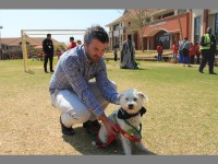 Lions…U21 Lions players Theuns Reynolds, Gideon Meiring, Quinton Terblanche, Vlam Bothma, Siphoto Phanta Qinisile with Pitbull Archie.