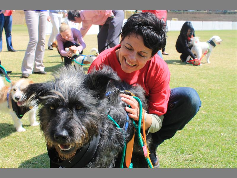 Staff and dogs… Corporate worker socialises with rescue dogs.
