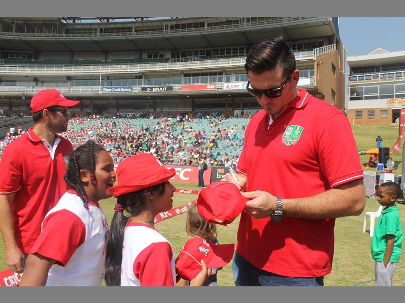 For the kids… Former cricket captain Graeme Smith signs autographs for young fans at the event.