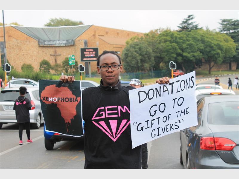 SANDTON - Motorists on the corner of William Nicol and Sandton drives saw the Going the Extra Mile (Gem) Project and Gift of the Givers gathering at the intersections for an interactive protest against xenophobia on 18 April.