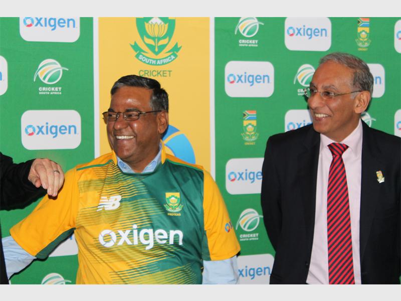 Pramod Saxena, the CEO of Oxigen with chief executive of Cricket South Africa, Haroon Lorgat.
