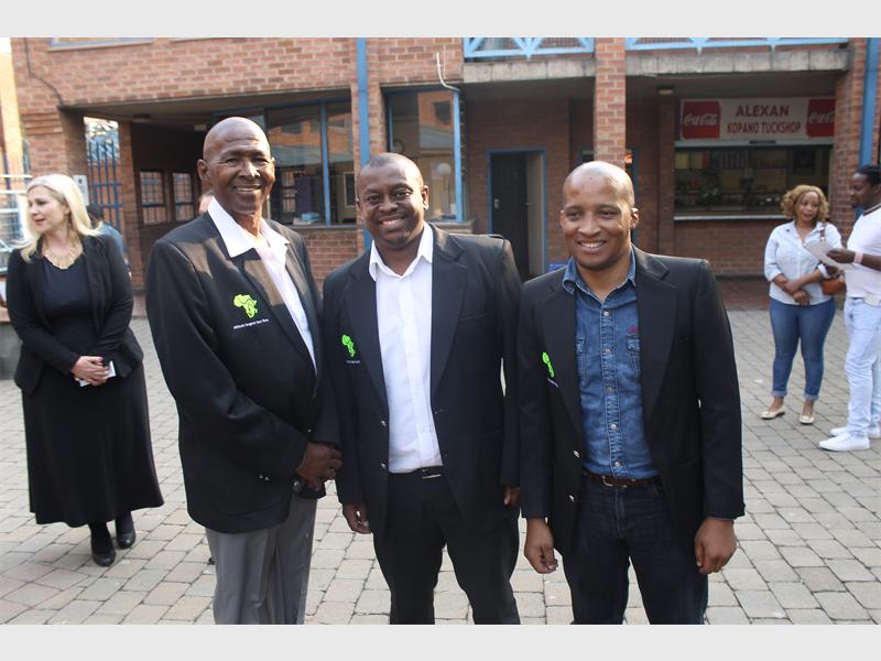 Father Mohale Rametsi who graduated in 2014 and his son, far right, Taelo, a 2015 graduate, flank Ngwakop Raboshakga. In the background is Lindie Saunderson, course director.
