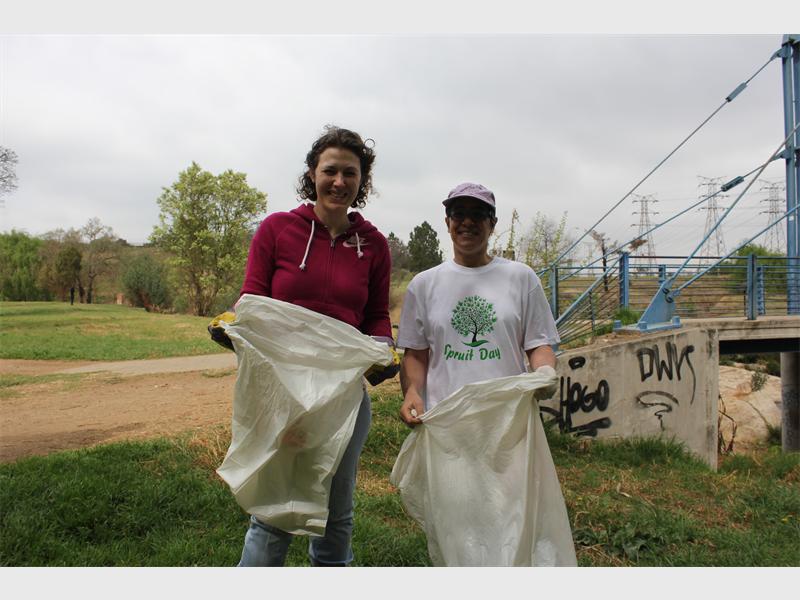 PICK UP: Kate and Grace Potgieter with Ward 93 councillor Annette Deppe, clean up the Braamfontein Spruit for the annual Spruit Day.