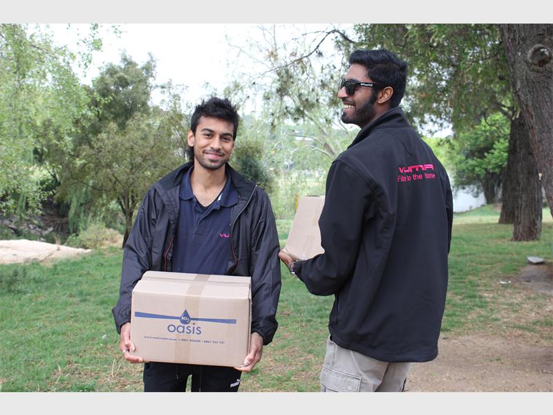 Moeen Mungalee and Tevesh Pather bring Spruit Day volunteers some much-needed refreshments.