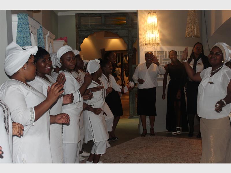 SONG BIRDS: The Mangwanani employees sing traditional songs as part of the boutique spa’s tradition.