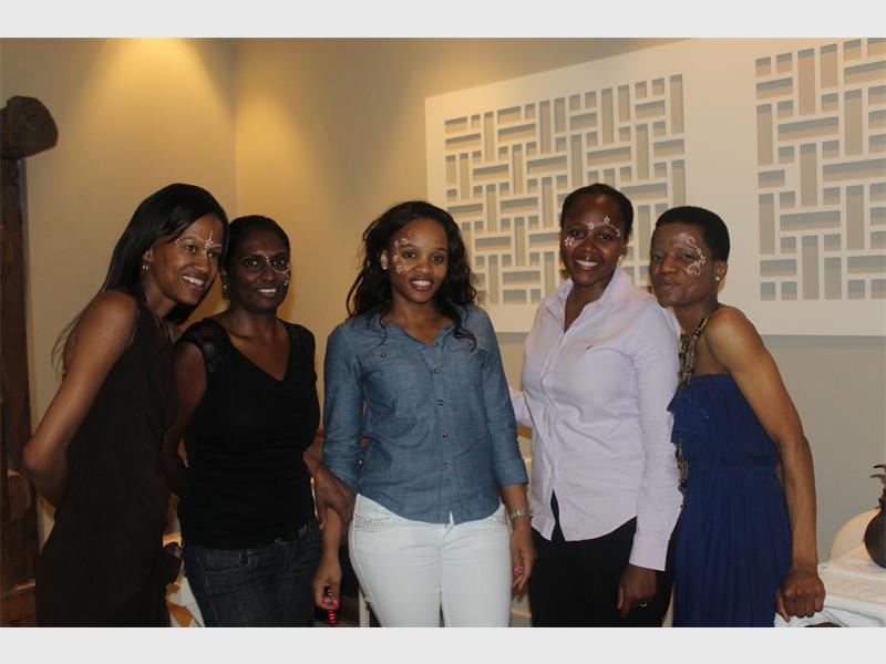 SOCIALISE: Yolisa Mamabolo, Joanne Ramsamy, Tsholofelo Mogoje, Valencia Mabuela and Yvette Mamabolo enjoy themselves at launch of Mangwanani Boutique Spa at The Pivot Hotel.