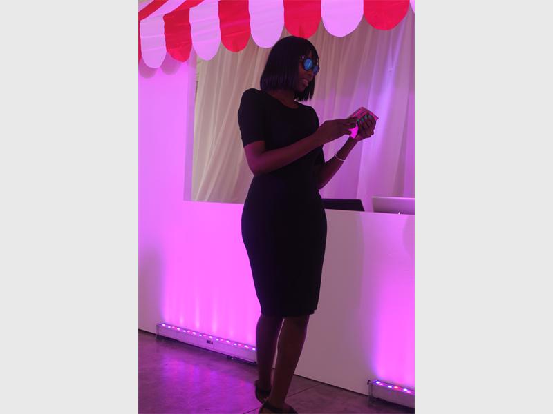 Pretty in pink… Master of ceremonies and DJ Olwee keeps guests entertained.