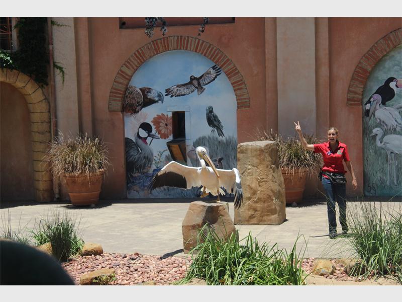 INFORM: Montecasino bird garden’s trainer, Rochele Niemand, shows off what a pelican can do.