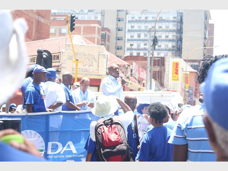 EXCITEMENT: DA leader Mmusi Maimane addresses the DA supporters in attendance at the rally against unemployment.