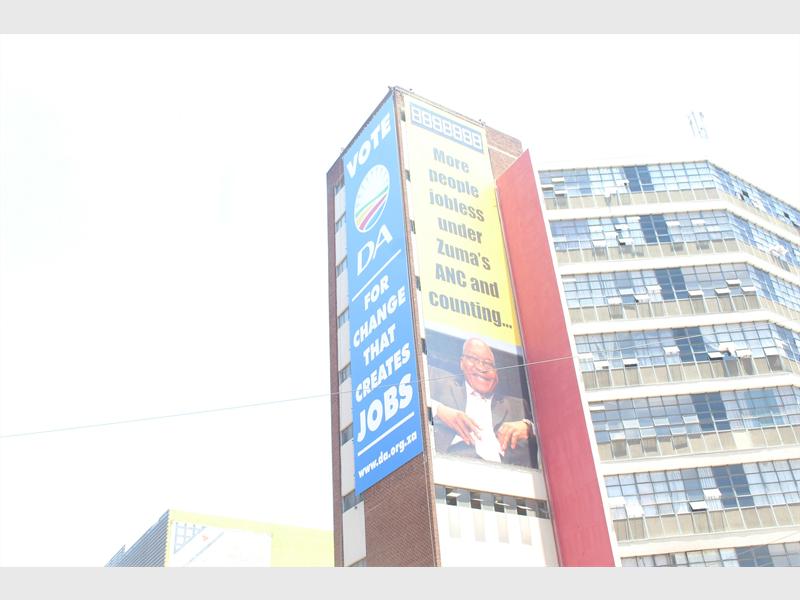 JOBLESS: The DA unveils a billboard that reads “184 2852 more people jobless under Zuma’s ANC and counting…”