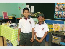 NEW FRIENDS: Pupils, Shivam Patel and Vuyolwethu Gxumisa on their first day of school.