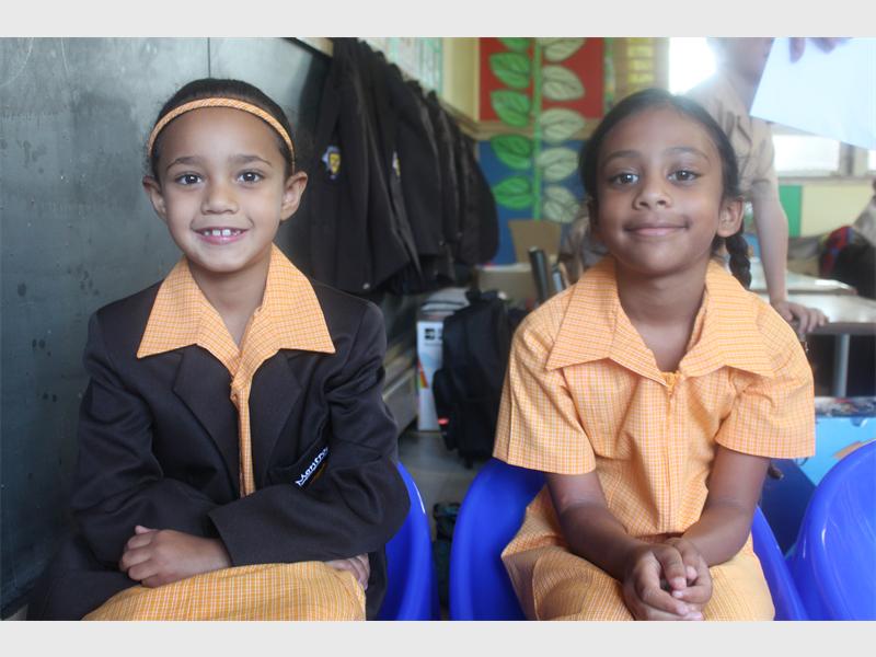 Learn… Khayla Wicomb and Iliana Coopen in their new classroom.