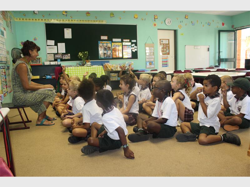 STORY TIME: Crawford Preparatory Fourways Grade 1 pupils gather around for a reading lesson.