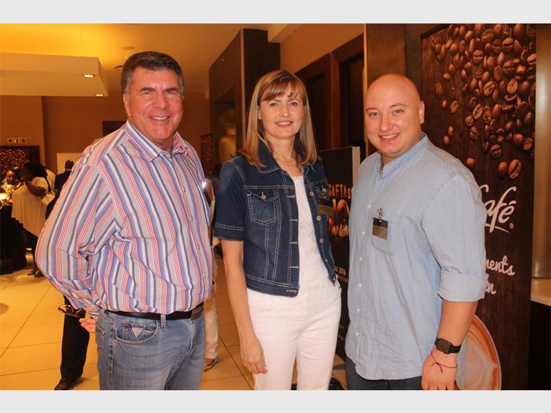 EXCITED: Nominee Johan Stemmet with Elsa Colling and Joe Strydom at the South African Film and Television Awards 2016 Nominees Announcement Breakfast held at Montecasino.