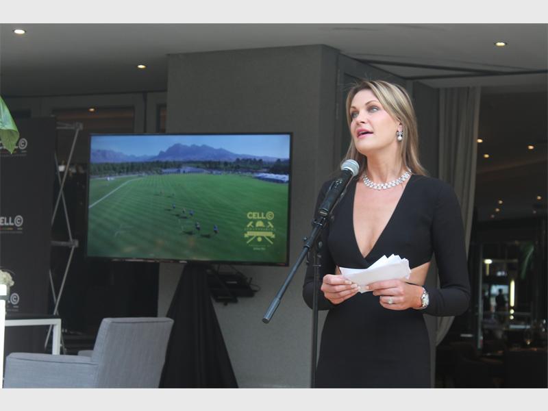 Support… Former Miss South Africa Claudia Henkel speaks at the Cell C Johannesburg Polo Classic media launch.